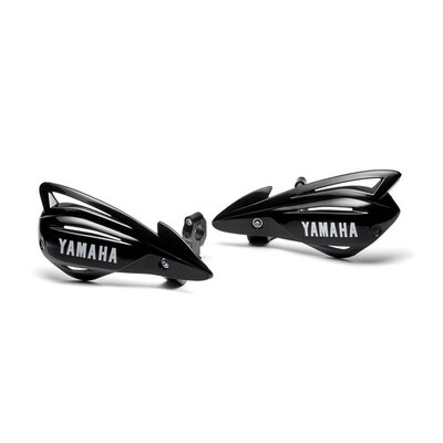 Protects riders' hands against small stones, and debris. Manufactured from tough impact-resistant plastic Yamaha logo Quick, and easy...